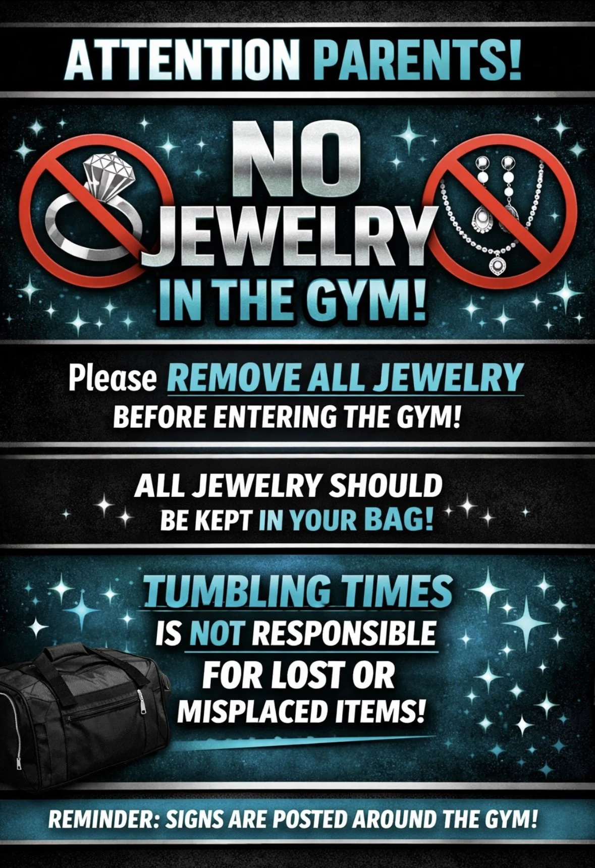 No JEWELRY in the Gym!!